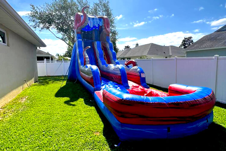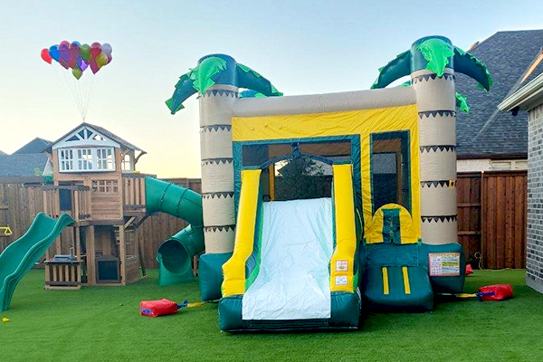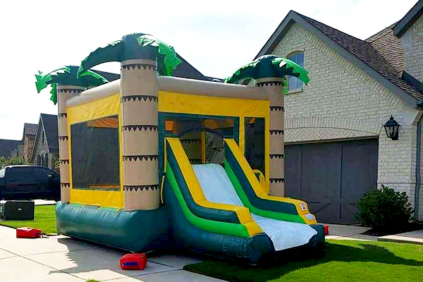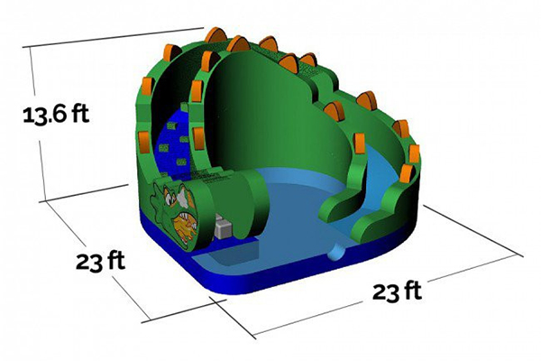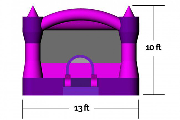 dimensions: 17.5' long x 13' wide x 10.25' high. Bounce area is 13x13.