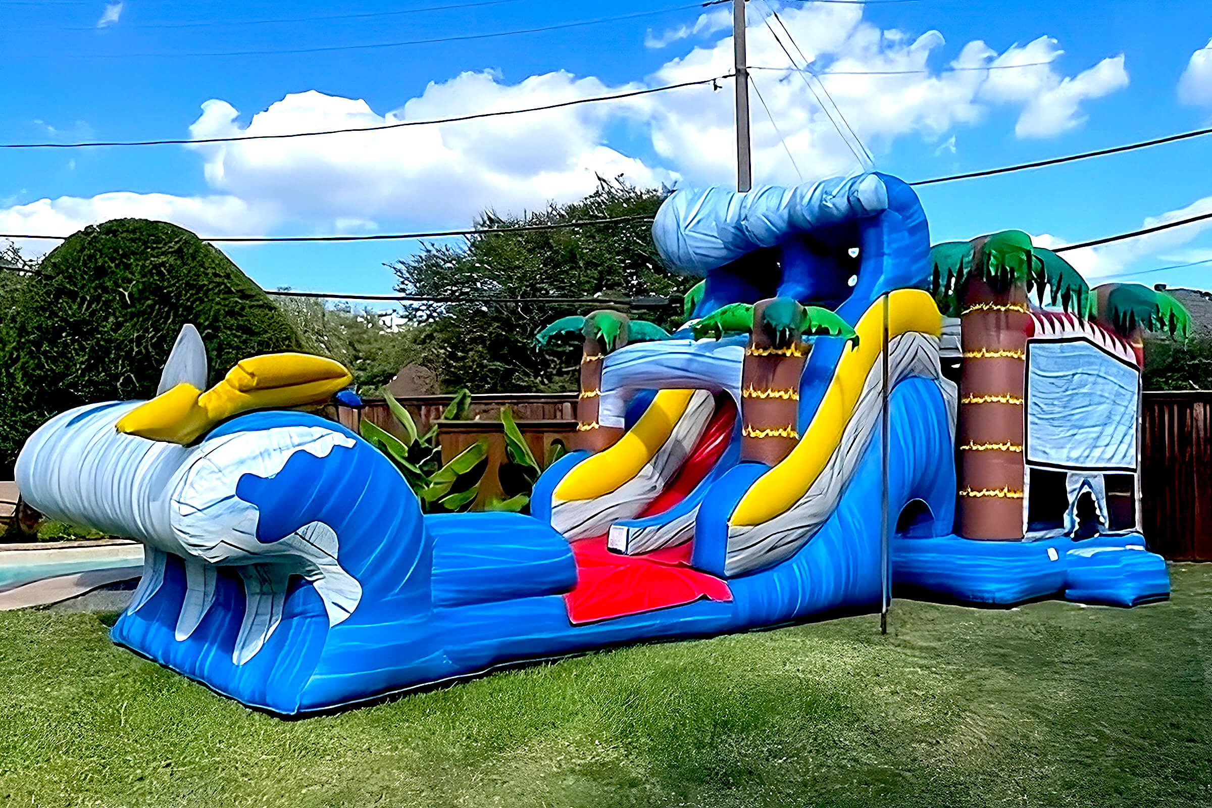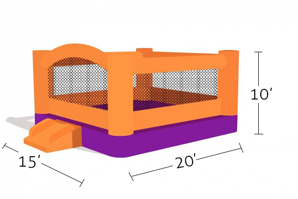 dimensions: 20.25' long x 15' wide x 11.4' high. Bounce area is 15x15.